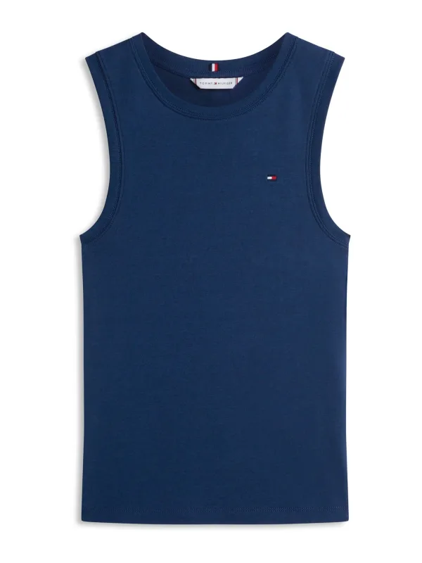 dames tank top van Tommy Hilfiger;model 'Slim Cody';look: effen;Pasvorm: slim fit/all-overpatroon;Applicatie: gestikt logo;hals: ronde hals;model met bandjes: brede bandjes;Materiaal: puur katoen