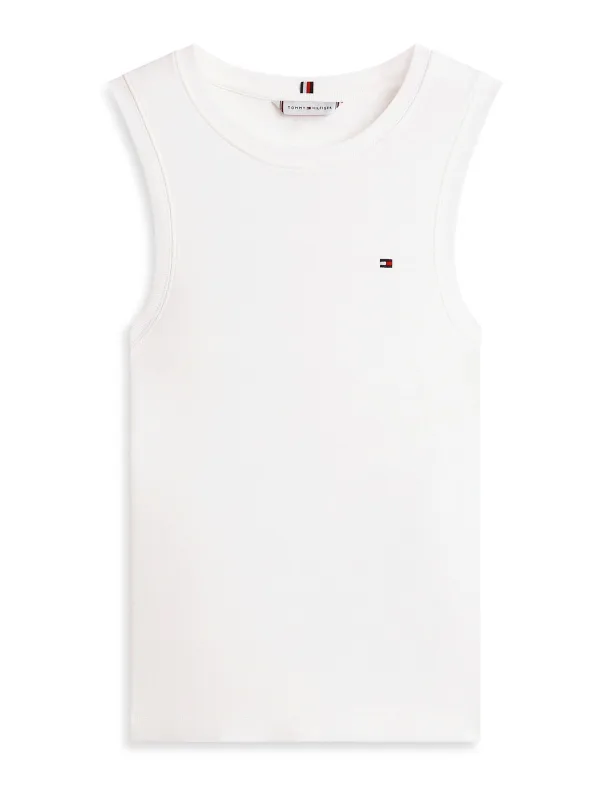 dames tank top van Tommy Hilfiger;model 'Slim Cody';look: effen;Pasvorm: slim fit/all-overpatroon;Applicatie: gestikt logo;hals: ronde hals;model met bandjes: brede bandjes;Materiaal: puur katoen
