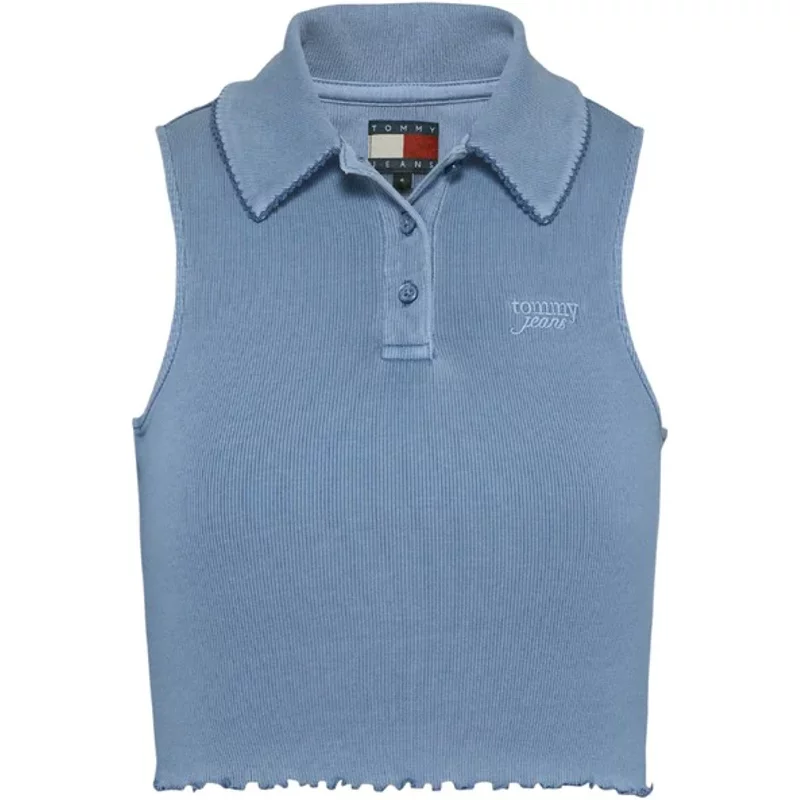 Korte damestop van Tommy Jeans;Mix van katoen en elastaan;Nauwsluitend model;Polokraag;Riblook;Geschulpte zoom;Labeldetail;Ruglengte bij maat S: 34 cm