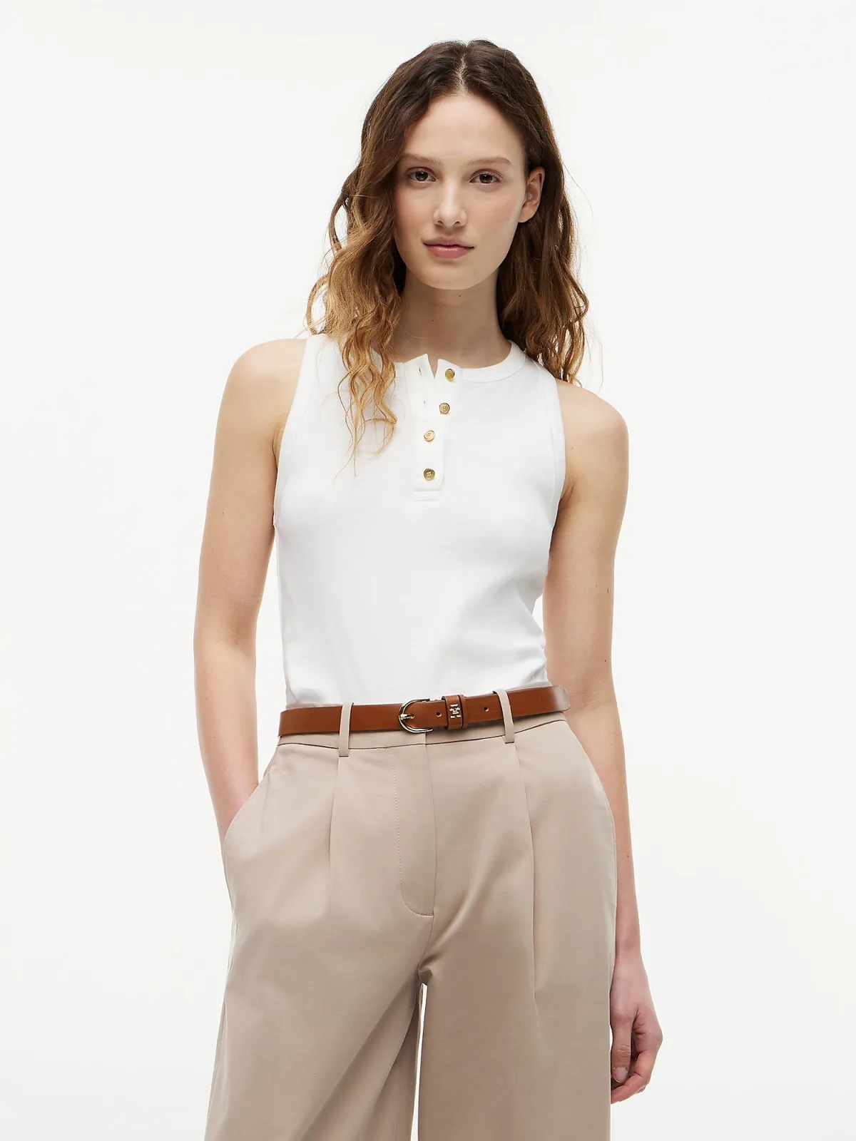 Design: Gevoerde zoom/rand, Geribbelde kraag, Rechte zoom, Knop placket; Materiaal: Jersey; Halstype: Henley hals; Motief: Effen; Soort bandjes: Normale bandjes; Extra's: Label borduurwerk, Voelt zacht aan; Pasvorm: Normale pasvorm; Armlengte: Mouwloos; Lengte: Normale lengte