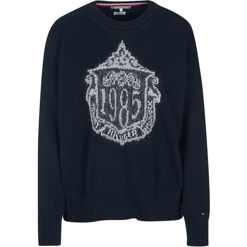 100% katoen; Tommy Hilfiger-trui; Model: WW0WW25824 CJM; Zacht katoen; ronde nek; lange mouw; Tommy Hilfiger-logodetails