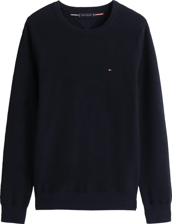 Gebreide herenpullover van Tommy Hilfiger;Look: effen;Pasvorm: Regular fit ;Motief: structuur;Applicatie: Logodetail, labelstitching;Kraagmodel: Hoge ronde hals;Hals: ronde hals;Mouwvorm: lange mouwen;Mouwboord: geribd;Rompzoom: geribd;Materiaalverwerking: Piqué;Materiaal: puur katoen