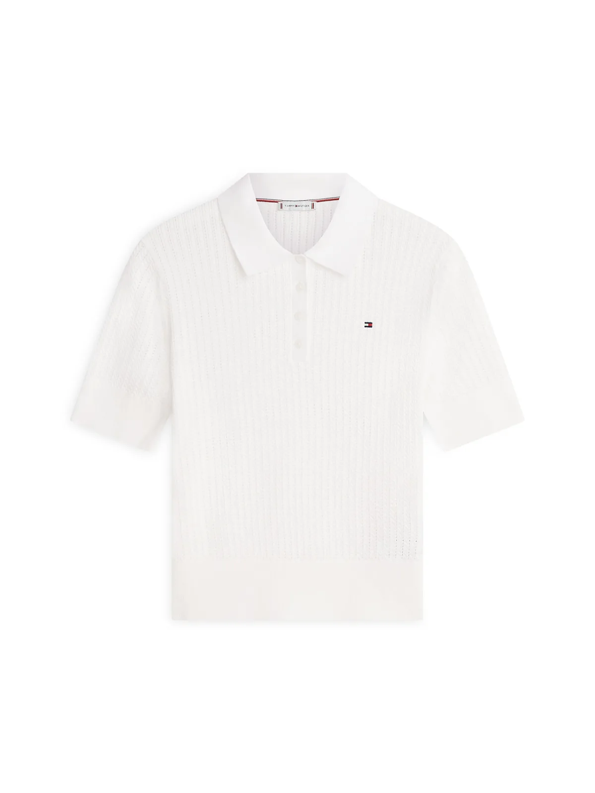Design: Geribbelde kraag, Geribd ceintuurtje; Type sluiting: Knoopsluiting; Materiaal: Knitwear; Halstype: Polokraag; Motief: Effen; Details: Borduursels, Mesh; Extra's: Label borduurwerk; Pasvorm: Normale pasvorm; Armlengte: Halve mouw; Lengte: Normale lengte