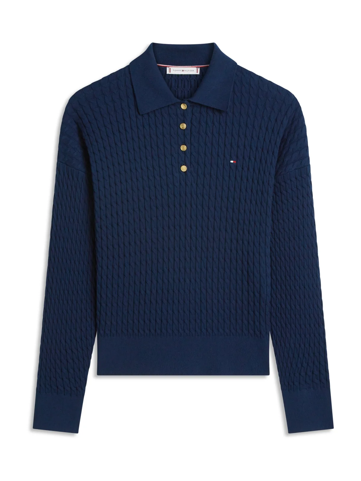 Design: Rechte zoom, Knop placket, Vlecht brei; Type sluiting: Knoopsluiting; Materiaal: Knitwear; Halstype: Polokraag; Motief: Effen; Details: Borduursels; Extra's: Fully fashioned, Voelt zacht aan; Pasvorm: Normale pasvorm; Armlengte: Lange mouw; Lengte: Normale lengte