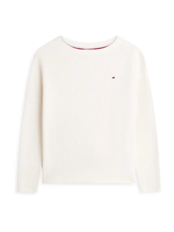 Damespullover van Tommy Hilfiger;Look: effen;Pasvorm: Regular fit ;Applicatie: Gestikt logo;Kraagmodel: Hoge ronde hals;Hals: ronde hals;Mouwvorm: lange mouwen;Mouwboord: geribd;Materiaalverwerking: Ribtricot;Materiaal: puur katoen