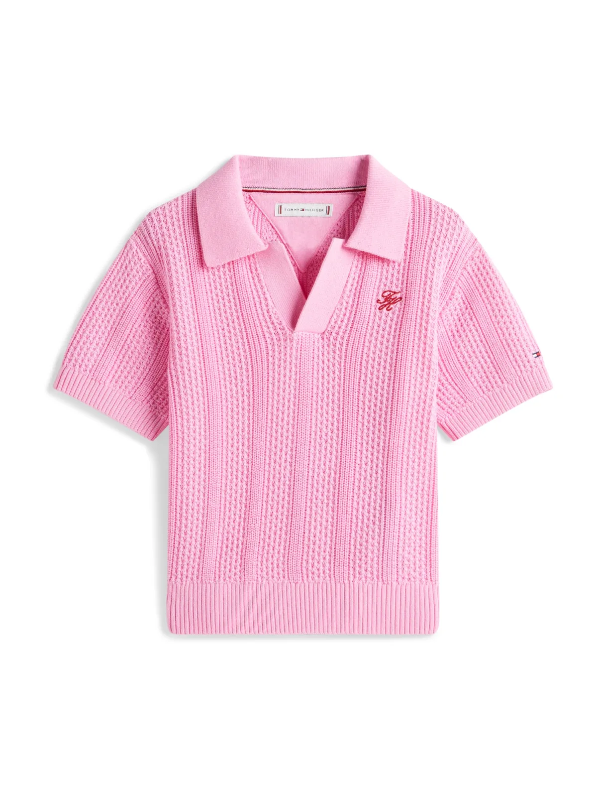 Design: Rechte zoom, Geribd ceintuurtje, Turn-down kraag; Materiaal: Knitwear; Halstype: Polokraag; Motief: Effen; Details: Borduursels; Extra's: Fully fashioned, Label borduurwerk, Met textuur; Pasvorm: Losse pasvorm; Armlengte: Kwartmouw; Lengte: Korte pasvorm