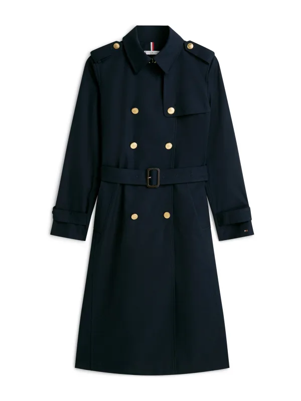 Type mantel: Trenchcoat; Design: Stijgende revers, Met riem, Zakken aan de zijkant; Type sluiting: Knoopsluiting; Voering: Licht gevoerd; Materiaal: Katoen; Motief: Effen; Extra's: Pailletten, Label patch/label flag, Voelt zacht aan; Pasvorm: Slanke pasvorm; Lengte: Lange pasvorm