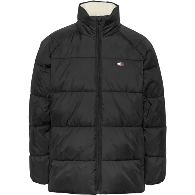 Heren jas van het merk Tommy Jeans in de kleur zwart. De jas is gemaakt van gerecycled polyester en heeft een normale pasvorm. Op de borst zit het iconische Tommy logo.