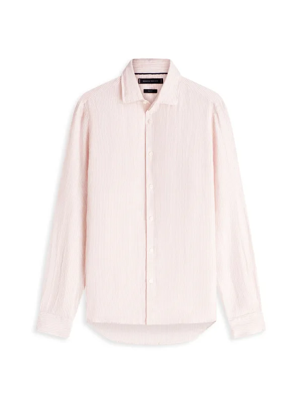 Design: Ronde zoom; Type sluiting: Knoopsluiting; Materiaal: Linnen; Halstype: Overhemdkraag (klassiek); Motief: Gestreept; Kraag: Cut-away boord; Extra's: Op staal naden; Pasvorm: Normale pasvorm; Pasvorm: Slim fit; Armlengte: Lange mouw