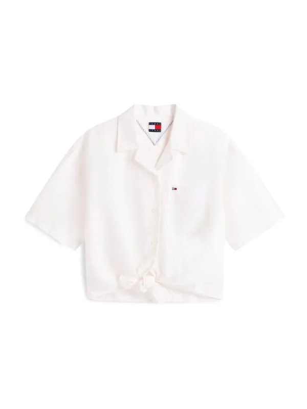 Blouse type: Klassieke blouse; Design: Revers kraag, Overcut schouder, Om te knopen/binden, Borstzak; Type sluiting: Knoopsluiting; Materiaal: Linnen; Motief: Effen; Details: Borduursels; Extra's: Label borduurwerk, Lichte stof; Pasvorm: Losse pasvorm; Armlengte: Halve mouw; Lengte: Korte pasvorm