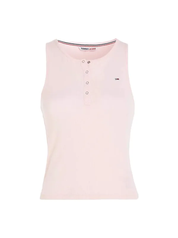 Tommy Jeans Essential damestop in roze katoen. Authentieke Tommy Jeans merkkleding – streetwear/sportkleding design van Tommy Jeans – Tommy Jeans voor dames, modieus en perfect voor dagelijks gebruik – de roze Tommy Jeans top is ideaal te combineren met de rest van je garderobe – comfortabel katoen – klassiek – essential –