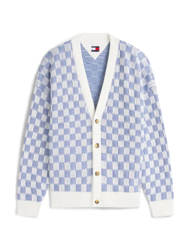 Design: Geribbelde kraag, Geribd ceintuurtje, Overcut schouder; Type sluiting: Knoopsluiting; Materiaal: Knitwear; Halstype: V-hals; Motief: Geruit; Extra's: All-over patroon, Fully fashioned, Label patch/label flag, Met textuur; Pasvorm: Losse pasvorm; Armlengte: Lange mouw; Lengte: Normale lengte