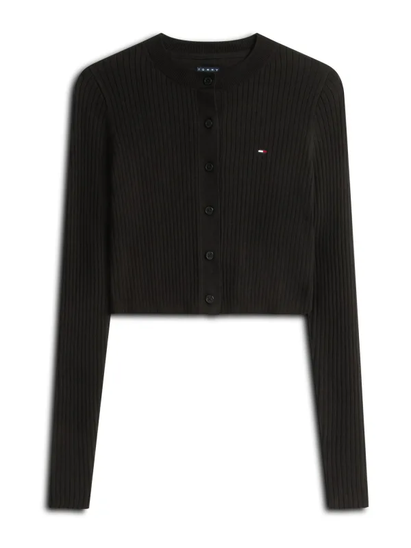 Design: Geribbelde kraag, Geribbeld gebreid; Type sluiting: Knoopsluiting; Materiaal: Knitwear; Halstype: Ronde hals; Motief: Effen; Details: Borduursels; Extra's: Fully fashioned, Label borduurwerk; Pasvorm: Slanke pasvorm; Armlengte: Lange mouw; Lengte: Korte pasvorm