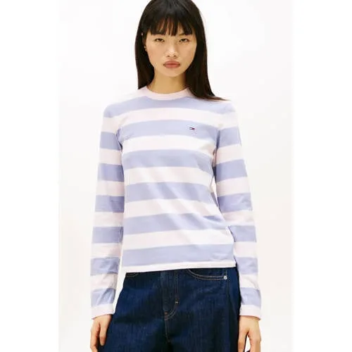 Deze top van Tommy Jeans heeft rechte mouwen en een ronde hals. De top is gemaakt van 100% katoen en heeft een streepprint, je draagt dit makkelijk bij verschillende outfits.