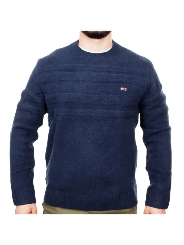 Tommy Jeans Soft Cable Flag pullover voor heren in blauw, gemaakt van hoogwaardig synthetisch materiaal. Een authentiek Tommy Jeans kledingstuk – streetwear/sportswear design van Tommy Jeans – modieus en perfect voor dagelijks gebruik. Deze blauwe Tommy Jeans pullover past perfect bij de rest van je garderobe. Comfortabel synthetisch materiaal – klassiek design – Soft Cable Flag.