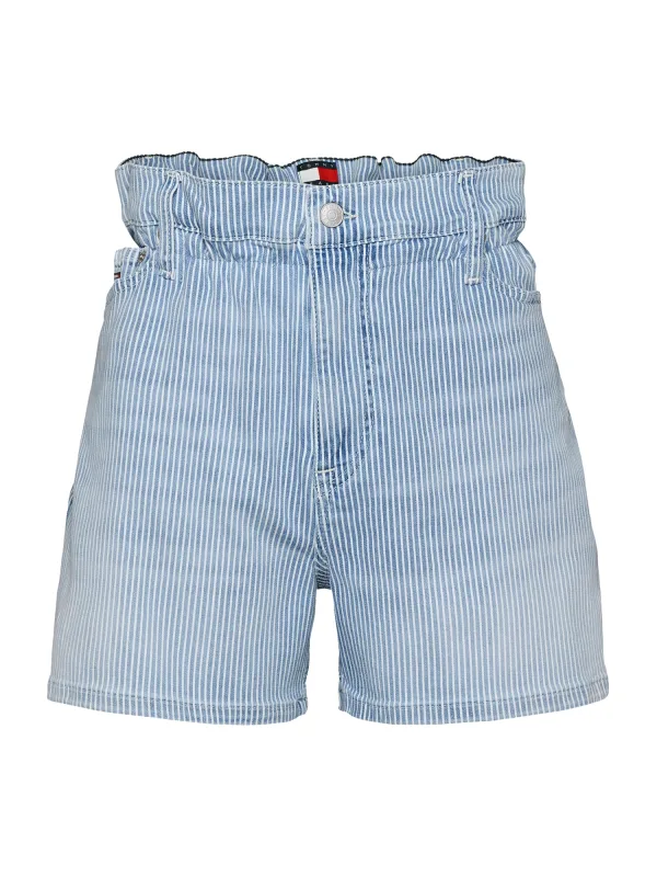 Design: Gevoerde zoom/rand, Achterzak, Zakken aan de zijkant; Type sluiting: Ritssluiting; Materiaal: Denim; Motief: Gestreept; Details: Gedrapeerd; Extra's: Studs, All-over patroon, Riemlussen; Lengte: Kort/mini; Pasvorm: Regular; Taillehoogte: High waist