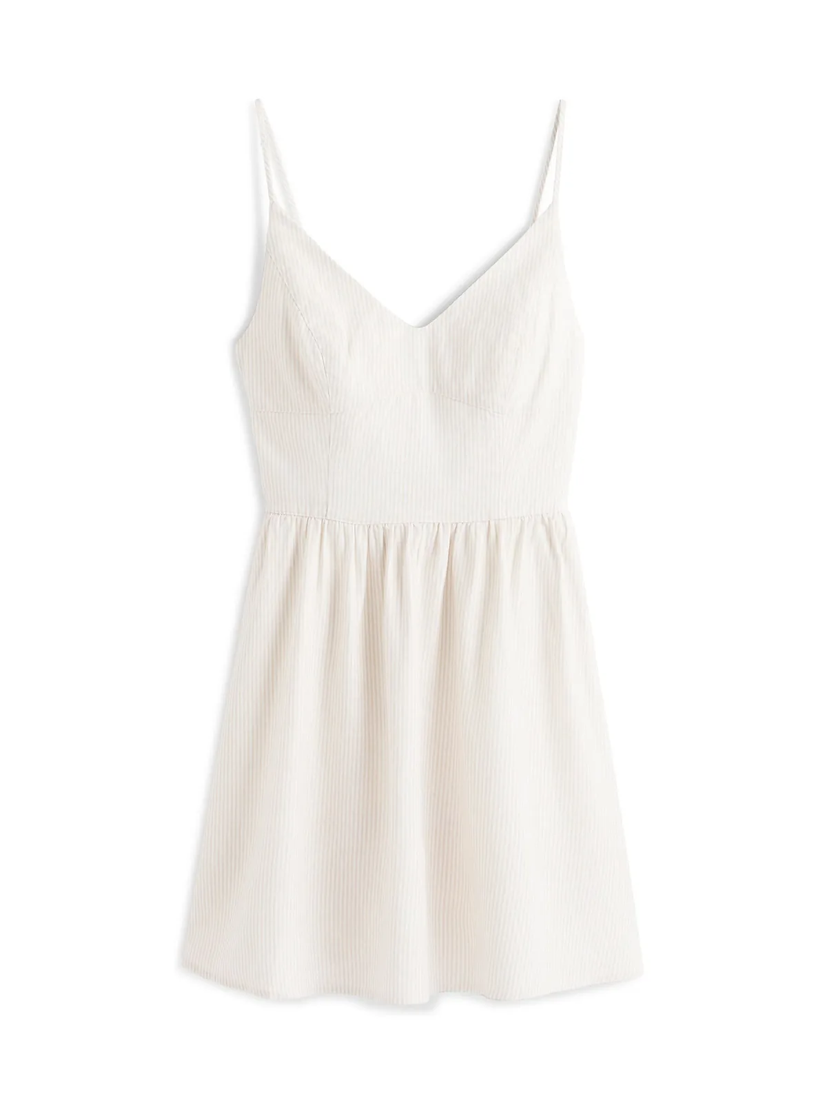 Design: Gevoerde zoom/rand, Zakken aan de zijkant; Materiaal: Linnen; Halstype: V-hals; Motief: Gestreept; Soort bandjes: Spaghettibandjes; Details: Borduursels, Gedrapeerd; Extra's: Verstelbare bandjes, Label borduurwerk, Huidvriendelijk materiaal; Lengte: Kort/mini; Snit: Getailleerd; Pasvorm: Normale pasvorm; Armlengte: Mouwloos