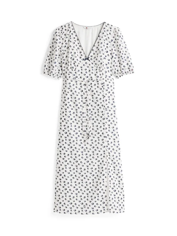 Design: Gevoerde zoom/rand; Materiaal: Gerecycled materiaal; Halstype: V-hals; Extra's: All-over patroon; Lengte: 3/4 lengte; Snit: Getailleerd; Pasvorm: Normale pasvorm; Armlengte: Kwartmouw