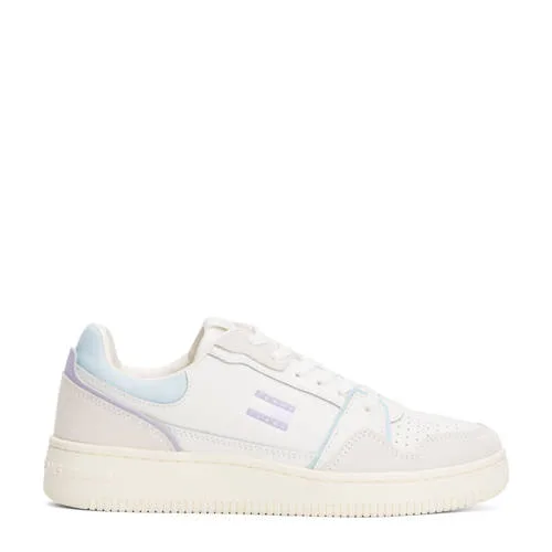 Tommy Jeans leren sneakers wit/lila/lichtblauw