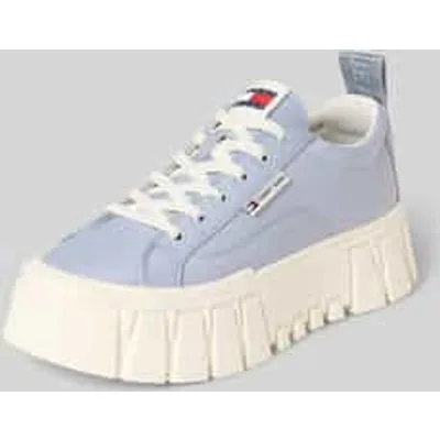 dames low top sneakers van Tommy Jeans;Model 'FLATFORM CHUNKY SNEAK';look: effen;Punt van de schoen: rond;Hakvorm: plat;Applicatie: Label in reliëf;Sluiting: Vetersluiting;Zool: gestructureerd;Materiaalverwerking: glad leer;Materiaal: echt rundleer