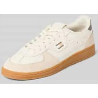 heren low top sneakers van Tommy Jeans;look: tweekleurig;punt van de schoen: rond;Hakvorm: plat;applicatie: labelapplicatie;sluiting: vetersluiting;materiaalverwerking: velours;Materiaal: echt rundleer