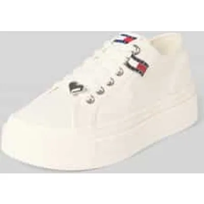 dames low top sneakers van Tommy Jeans;look: effen;punt van de schoen: rond;Hakvorm: plat;Applicatie: labelpatch;sluiting: vetersluiting;Zool: dempend;materiaalverwerking: glad leer;Materiaal: echt rundleer