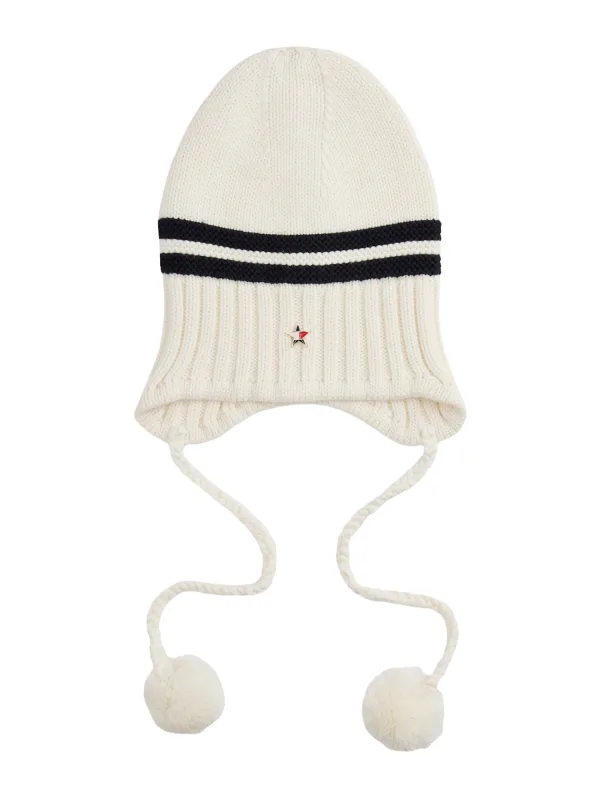 Design: Rechte zoom, Om te knopen/binden; Materiaal: Gerecycled materiaal; Motief: Gestreept; Type muts: Beanie; Extra's: Label plaatje, Fully fashioned, Met textuur, Voelt zacht aan