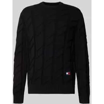 Gebreide herenpullover van Tommy Jeans;Look: effen, gebreide look;Pasvorm: Regular fit ;Motief: Kabelpatroon;Applicatie: Logodetail;Kraagmodel: Hoge ronde hals;Hals: ronde hals;Mouwvorm: lange mouwen;Mouwboord: geribd;Rompzoom: geribd;Materiaal: puur katoen