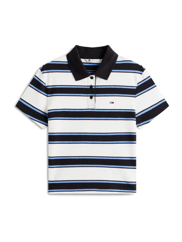 Design: Gevoerde zoom/rand, Geribbelde kraag; Type sluiting: Knoopsluiting; Materiaal: Katoen; Halstype: Polokraag; Motief: Gestreept; Details: Borduursels; Extra's: All-over patroon, Voelt zacht aan; Pasvorm: Slanke pasvorm; Armlengte: Kwartmouw; Lengte: Korte pasvorm
