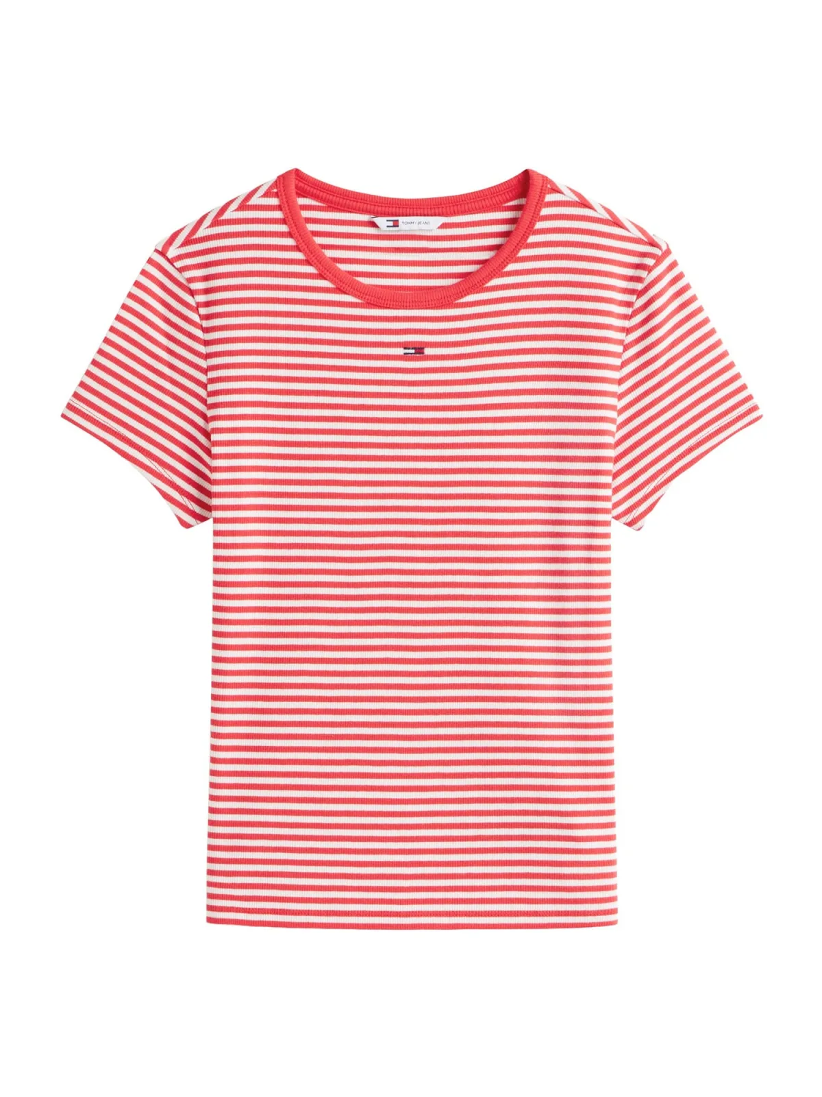 dames T-shirt van Tommy Jeans;look: all-over motief;pasvorm: slim fit;Applicatie: gestikt logo;hals: ronde hals;mouwvorm: korte mouw;materiaalverwerking: jersey;Materiaal: katoenmix