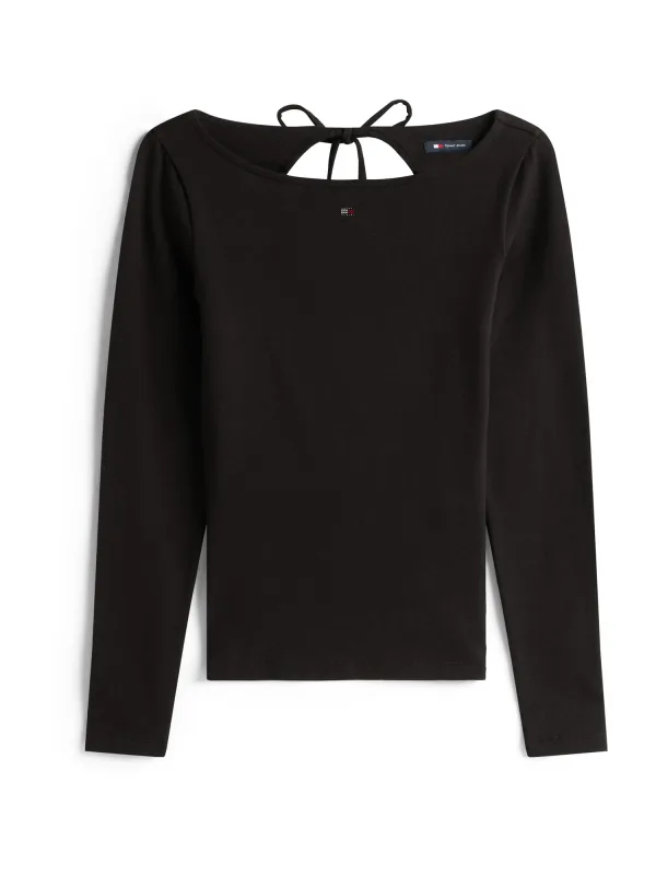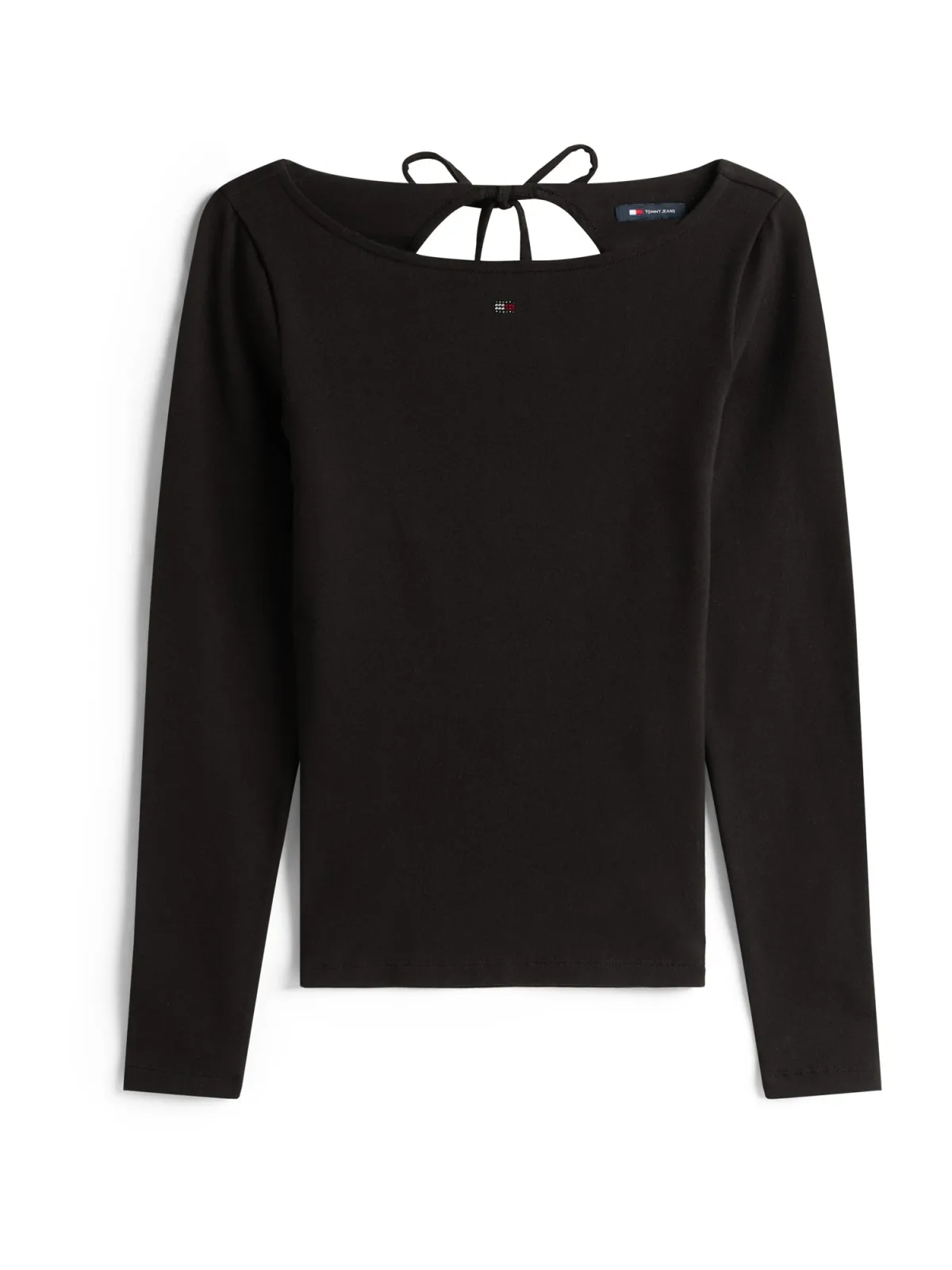 Design: Gevoerde zoom/rand, Rechte zoom, Met band/snoer; Materiaal: Jersey; Halstype: Boothals; Motief: Effen; Details: Cut-outs, Sierstenen; Extra’s: Applicaties, Op staal naden, Voelt zacht aan; Pasvorm: Slanke pasvorm; Armlengte: Lange mouw; Lengte: Normale lengte
