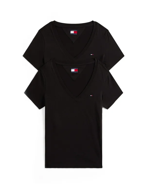 Design: Gevoerde zoom/rand, Geribbelde kraag, Rechte zoom; Materiaal: Jersey; Halstype: V-hals; Motief: Effen; Details: Borduursels; Extra's: Label borduurwerk, Op staal naden, Voelt zacht aan; Pasvorm: Slanke pasvorm; Aantal: 2 Pack; Armlengte: Kwartmouw; Lengte: Normale lengte