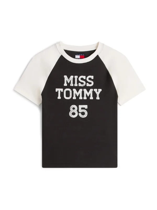 Design: Gevoerde zoom/rand, Geribbelde kraag, Raglanmouwen; Materiaal: Jersey; Halstype: Ronde hals; Motief: Tekst print; Extra's: Op staal naden, Voelt zacht aan; Pasvorm: Slanke pasvorm; Armlengte: Kwartmouw; Lengte: Korte pasvorm