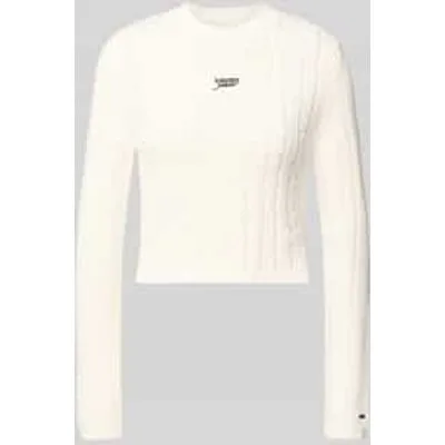 Gebreide pullover van Tommy Jeans voor dames;Look: effen, gebreide look;Pasvorm: Slim fit;Applicatie: Logodetail, labelopschrift;Kraagmodel: Hoge ronde hals;Hals: ronde hals;Mouwvorm: lange mouwen;Mouwboord: geribd;Rompzoom: geribd;Materiaalverwerking: Knitwear;Materiaal: puur katoen