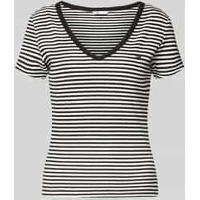 T-shirt voor dames van Tommy Jeans;Look: Two-tone;Pasvorm: Slim fit;Applicatie: Gestikt logo;Hals: V-hals;Mouwvorm: korte mouwen;Materiaalverwerking: RIB;Materiaal: Katoenmix
