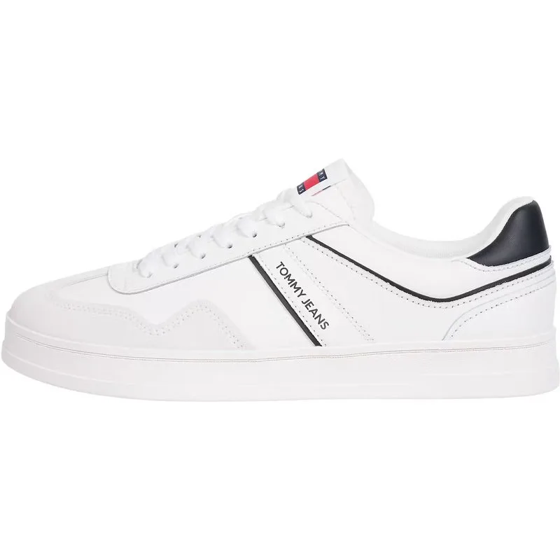 Tommy Jeans sneakers voor hem. De sneakers zijn gemaakt van hoogwaardig leer en textiel. De schoen heeft een EVA binnenzool, wat zorgt voor een lekkere demping. Merk: Tommy JeansModelnaam: The GreenwichCategorie: heren sneakersMaterialen: canvasKleur: wit, zwart