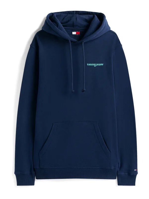 Herenhoodie van Tommy Jeans;Look: effen;Pasvorm: Relaxed fit;Applicatie: Labelprint, logostitching;Details: extra brede schouders;Kraagmodel: Capuchon en tunnelkoord;Mouwvorm: lange mouwen;Mouwboord: geribd;Rompzoom: geribd;Materiaalverwerking: Sweat;Materiaal: puur katoen;Ruglengte bij maat M: 73 cm;Borstomvang bij maat M: 59 cm;Mouwlengte bij maat M: 65 cm