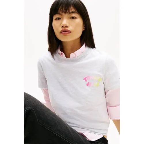 Voor een relaxte, maar verzorgde look is dit Tommy Jeans dames T-shirt een fijne basic voor elke dag. Het grijze shirt is gemaakt van 100% katoen en voelt zacht en luchtig aan op de huid. De bekende Tommy Jeans printopdruk aan de voorkant geeft je outfit meteen een herkenbare, sportieve uitstraling. Ideaal voor een vrije dag, een citytrip of gewoon als favoriet T-shirt in je garderobe.Details die je elke dag aantrekt Gemaakt van 100% katoen voor een zachte touch en prettig draagcomfort Grijze kleur die makkelijk te combineren is met jeans, shorts of een rok Korte mouwen met rechte inzet voor een casual silhouet Ronde hals die mooi langs de halslijn valt Printopdruk op de borst voor de herkenbare Tommy Jeans stijl Onderdeel van de Rebel collectie, met een stoere, casual uitstralingCasual styling voor elke dagDraag het T-shirt op een blauwe of zwarte jeans voor een klassieke combinatie, of kies voor een korte broek en sneakers op warmere dagen. Door de rechte mouwen en de ronde hals is het shirt ook prettig om onder een spijkerjack of bomberjack te dragen in het voorjaar.Tommy Jeans: iconische casual stijlTommy Jeans staat bekend om de combinatie van Amerikaanse denimstijl met moderne, sportieve details. De collecties zijn geïnspireerd op het klassieke collegegevoel, maar dan met een frisse update voor nu. Met dit T-shirt haal je een betrouwbaar item in huis dat past bij die herkenbare, ontspannen Tommy uitstraling.Een comfortabele basic met een duidelijke logo-look die je graag uit de kast pakt.