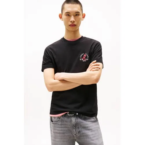 Dit T-shirt van Tommy Jeans heeft een regular fit en korte mouwen. Het is gemaakt van 100% katoen, heeft een ronde hals en voelt zacht aan. Dit shirt draag je makkelijk bij elke outfit.