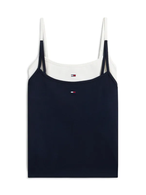 Design: Gevoerde zoom/rand, Rechte zoom; Materiaal: Jersey; Halstype: Ronde hals; Motief: Effen; Soort bandjes: Spaghettibandjes; Extra's: Label borduurwerk, Voelt zacht aan; Pasvorm: Slanke pasvorm; Aantal: 2 Pack; Armlengte: Mouwloos; Lengte: Korte pasvorm