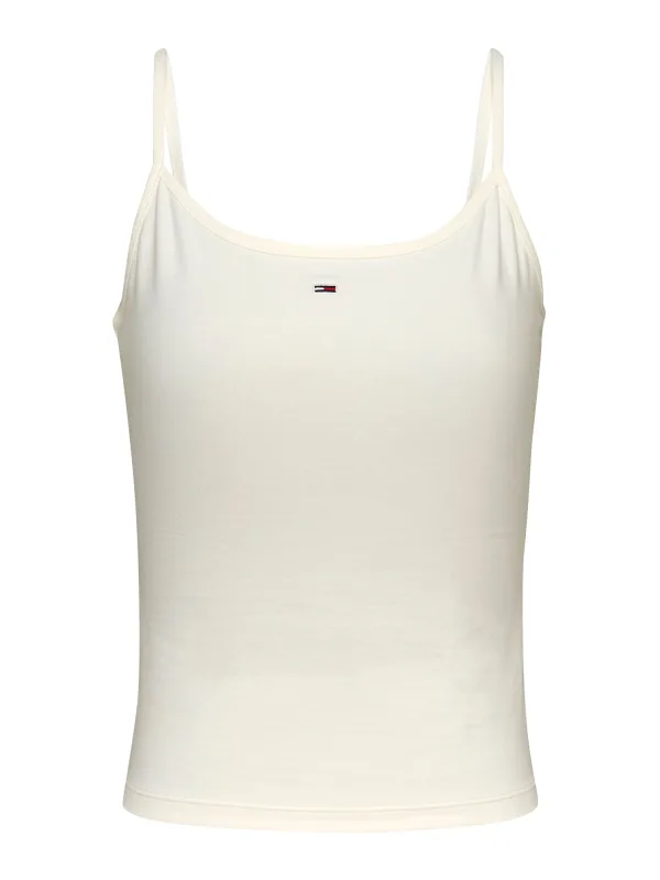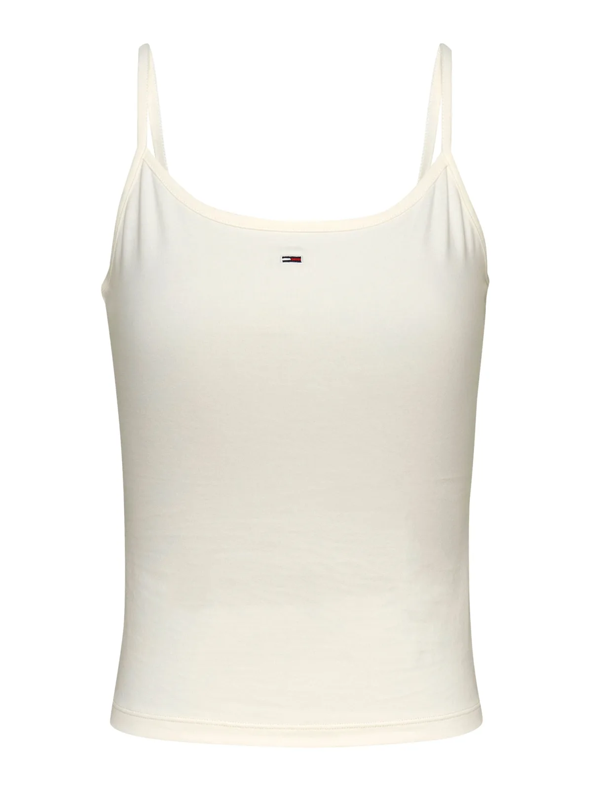 Damestop van Tommy Jeans;Look: effen;Pasvorm: Regular fit ;Applicatie: Gestikt logo;Hals: Vierkant;Model bandjes: verstelbare spaghettibandjes;Materiaal: Katoenmix