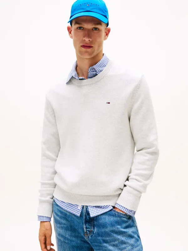 Gebreide herenpullover van Tommy Jeans;Look: mêlee;Pasvorm: Regular fit;Applicatie: Gestikt logo;Kraagmodel: Hoge ronde hals;Hals: ronde hals;Mouwvorm: lange mouwen;Mouwboord: geribd;Rompzoom: geribd;Materiaalverwerking: Knitwear;Materiaal: puur katoen;Ruglengte bij maat M: 68 cm;Borstomvang bij maat M: 51 cm;Mouwlengte bij maat M: 67 cm
