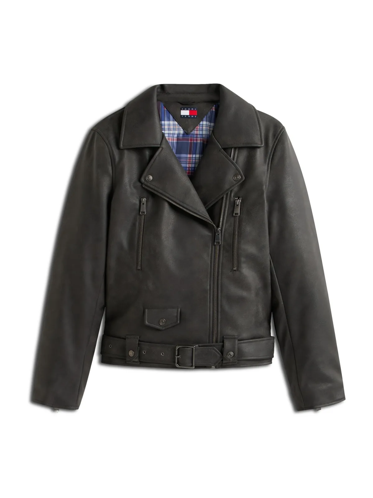 Design: Rechte zoom, Revers kraag, Borstzak, Met riem, Opzet-/flapzak, Schuine rits; Type sluiting: Ritssluiting; Type jas: Bikerjack; Voering: Licht gevoerd; Materiaal: Imitatieleder; Motief: Effen; Extra's: Op staal naden, Gladde stof, Riemlussen; Pasvorm: Normale pasvorm