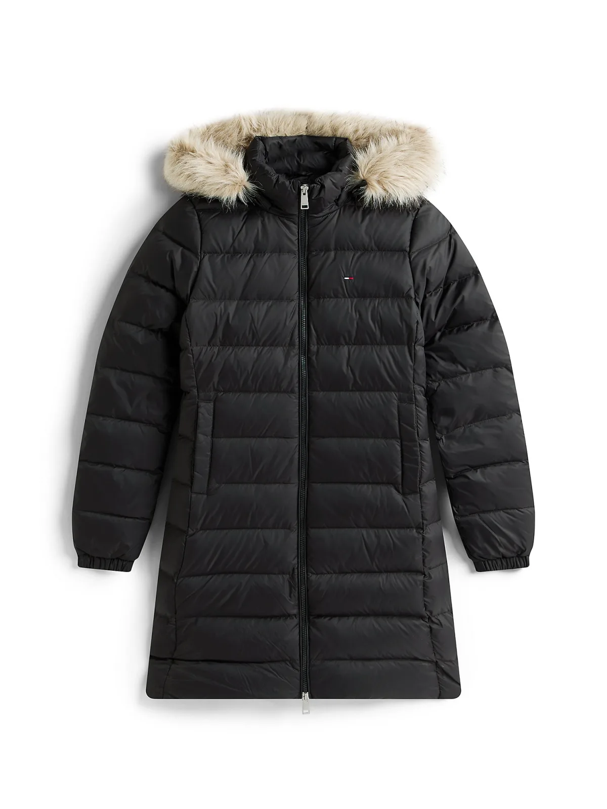 Donsmantel voor dames van Tommy Jeans;Look: effen;Pasvorm: Regular fit;Kraagmodel: Opstaande kraag met capuchon en imitatiebont;Sluiting: Tweewegritssluiting;Applicatie: Labeldetail;Mouwvorm: lange mouwen;Mouwboord: elastisch;Zakken: steekzakken opzij met drukknoop;Totale lengte bij maat S: 85 cm;Borstomvang bij maat S: 45 cm;Schouderbreedte bij maat S: 39 cm;Mouwlengte bij maat S: 64 cm