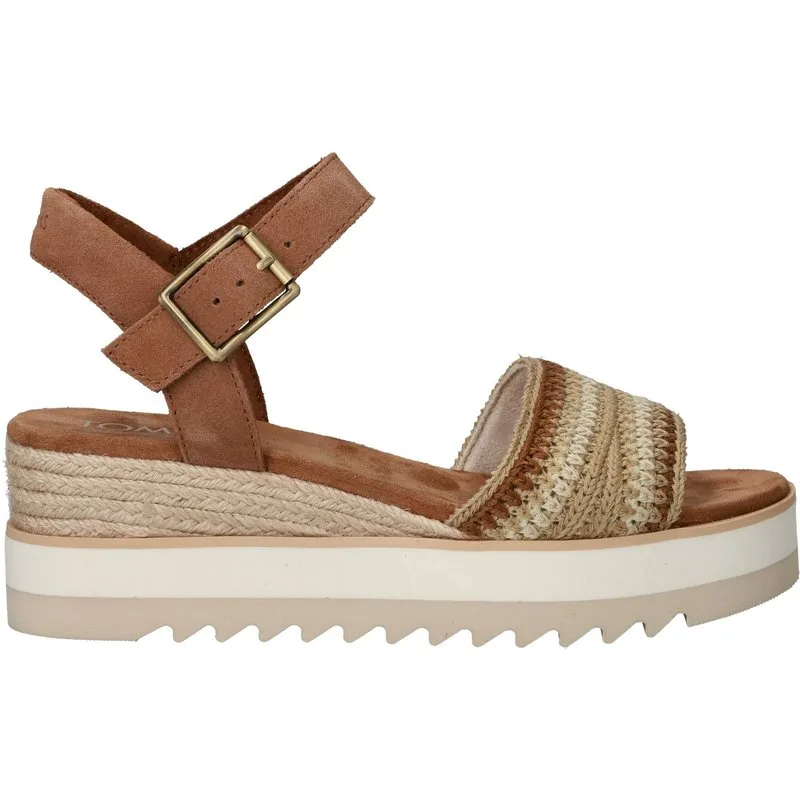 Deze Toms Diana Sandalen zijn voor Dames in de kleur Cognac. De schoenen zijn gemaakt van het materiaal Textiel;Suède en de voering is gemaakt van . De voetbreedte van de schoenen is G - normaal.