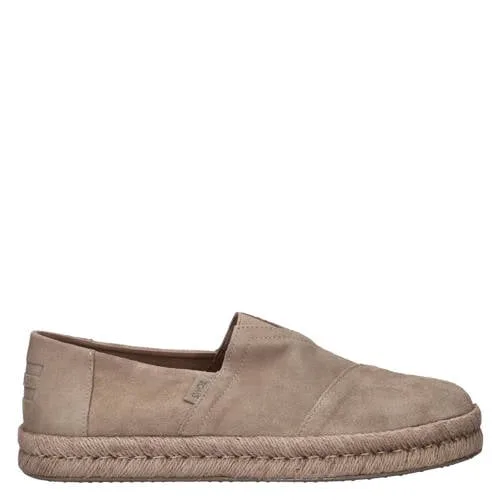 Ga relaxed en stijlvol de zonnige dagen tegemoet met deze heren espadrilles van Toms. Het model Alpargata Rope 2.0 is een moderne versie van de klassieke instapper, met een iets dikkere zool en een stoere touwafwerking langs de rand. De beige suède bovenkant geeft een rustige, verzorgde look die makkelijk te combineren is met je favoriete zomeroutfits.Licht aan je voet, stevig onder je stap Bovenkant van zacht suède dat soepel om je voet sluit Elastische V-inzet voor een makkelijke instap en een aangesloten pasvorm Tussenzool omwikkeld met gevlochten jute voor de typische espadrille-look Platte rubberen loopzool voor grip en stabiliteit op verschillende ondergronden Uitneembaar CloudBound voetbed met fijne demping en ademend comfort Voering van textiel die prettig aanvoelt bij blote voeten of dunne sokken Instapmodel zonder sluiting, ideaal voor dagelijks gebruik in de zomerIdeaal voor zonnige, dagelijkse momentenDeze Toms espadrille past goed bij een korte broek en T-shirt, maar ook bij een luchtige chino met linnen overhemd. Door het lichte draaggevoel en de flexibele zool is dit een fijne schoen voor een dag in de stad, een terrasbezoek of een ontspannen wandeling langs de boulevard.Toms, casual schoenen met herkenbare stijlToms is bekend om zijn kenmerkende instappers en espadrilles met een comfortabele pasvorm en een relaxte uitstraling. De collectie draait om modellen die je makkelijk aantrekt en de hele dag door kunt dragen. Met deze Alpargata Rope 2.0 haal je een tijdloze basic in huis waar je seizoen na seizoen plezier van hebt.Een comfortabele espadrille die je zomergarderobe rustig en verzorgd aanvult.