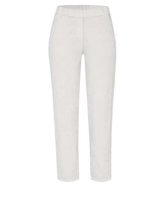 Deze dames broek heeft een gladde, elastische tailleband zonder zichtbare sluiting voor een nette, vlakke voorkant. Je profiteert van twee schuine steekzakken en slank toelopende pijpen met 7/8-lengte. Het effen, lichtneutrale kleurbeeld oogt fris en combineert makkelijk. De zorgvuldige afwerking is typisch TONI: comfortabel, stijlvol en netjes in vorm. Deze pantalon met chino-uitstraling past moeiteloos in je garderobe en blijft door zijn tijdloze look lang relevant.