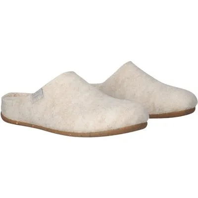Specificaties: * Pasvorm: instap model * Bovenwerk: gerecycled vilt * Binnenvoering: vilt * Binnenzool: uitneembaar voetbed met dekzool van ademend textielvilt * Buitenzool: flexibele rubberen zool * Kleur: beige * Materiaal: gerecycled vilt – textiel – wol – rubber