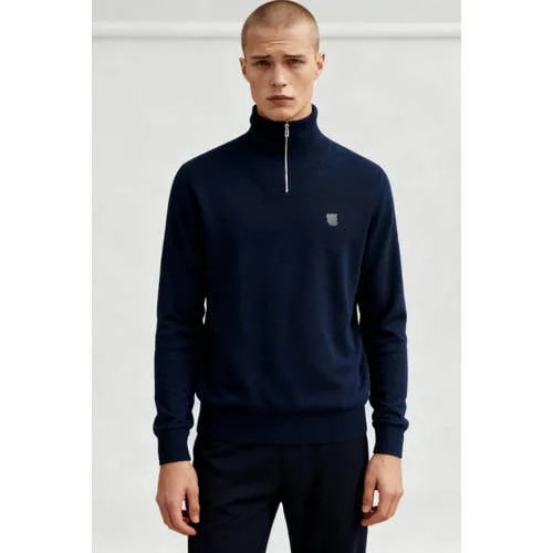 Tonsure gebreide trui met wol donkerblauw