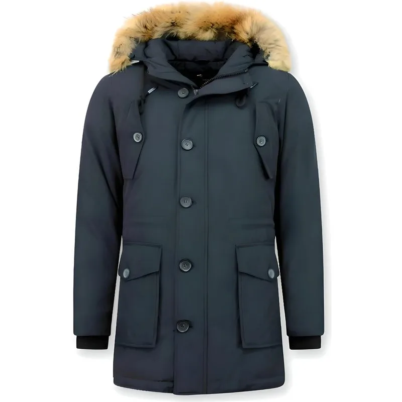 Een echte lange winterjas voor heren met een extra grote bontkraag in het blauw. De extra grote bontkraag valt lekker op en geeft u extra warmte en comfort. - Productinformatie: Lange Winterjas Heren Heeft een Grote echte bontkraag Heeft een mooie blauwe kleur Gemakkelijk te combineren Comfortabel en warm model, perfect voor de winter Lang model met een slim fit pasvorm Het materiaal bestaat uit polyester De voering bestaat uit 40% polyester 60% katoen Heeft een rits met knopen als sluiting Het model heeft 2 jaszakken en geen binnenzakken De capuchon is niet afritsbaar De bontkraag is wel afritsbaar Breng hem naar de stomerij voor een maximale levensduur Kan ook gewassen worden op 30 graden Verkrijgbaar in de maten XS – S – M – L – XL Let op: De bontkraag is een